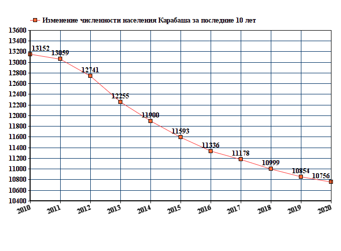 Данные по количеству населения получены от службы государственной статистики. График изменения численности горожан за последние 10 лет.