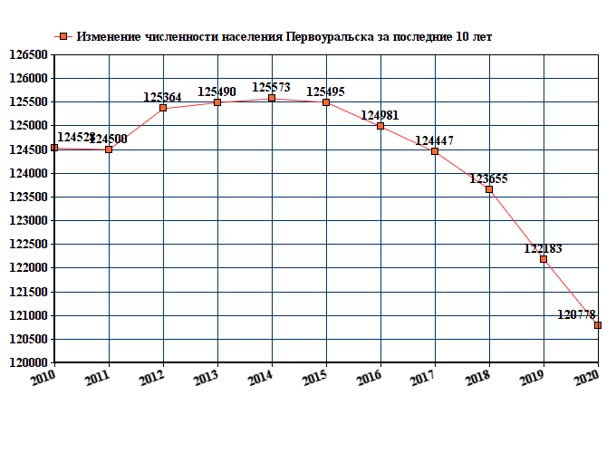 Данные с графика показывают снижение численности населения со 124528 человек в 2010 году до 114450 человек в 2022 году.