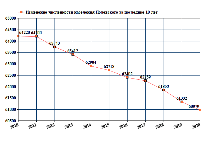 Данные с графика показывают стабильное снижение численности населения с 64220 человек в 2010 году до 55182 человек в 2022 году.